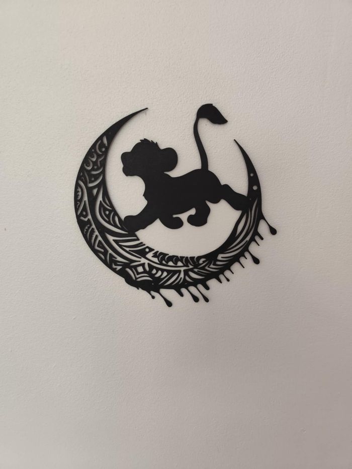 Décoration murale Simba & Lune – Style tribal Disney Décoration murale en silhouette noire représentant un lionceau (style Roi Lion) sur un croissant de lune orné de motifs tribaux. Parfait pour une chambre d’enfant, une déco murale originale ou les fans de Disney revisité en art moderne. 🔹 Légère, facile à fixer au mur 🔹 Découpe précise, finition élégante 🔹 Idéal pour une touche ethnique et féerique 📏 Dimensions : largeur 14 cm Hauteur 15 cm #RoiLion #Simba #DécoMurale #DisneyArt #LionKing #DécoEnfant #ArtTribal #DisneyFan #VintedMaison #ChambreEnfant #DécorationMurale #DécoOriginale #SilhouetteArt Impression 3D 126