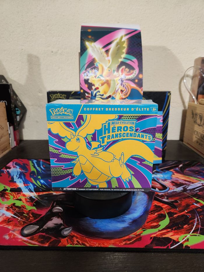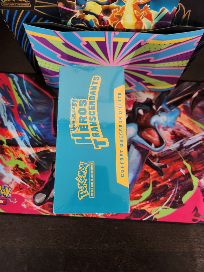 ✨Item : Coffret Dresseur Elite Héros Transcendant Méga-Evolution ME 2.5, édition française. Contenu officiel : - 9 boosters Héros Transcendant - 1 carte promo exclusive - 65 protège-cartes - 45 cartes Énergie - 1 guide de jeu - 6 dés marqueurs de dégâts - 1 dé lancé de compétition - 2 marqueurs d’état - 1 coffret de rangement + séparateurs Idéal pour collectionneurs ou ouverture plaisir ! 📸 Les ETB sont d'origines mais reçues avec des trous donc vendu en l'état. (La dernière photo sert d'exemple mais les trous ne sont pas identiques sur chaque coffret) Chaque lot sera envoyé en photos pour validation avant la vente. 📦Envoi rapide et soigné, avec photos des envois et papier bulle. Quantité importante disponible, merci de m'écrire en fonction de vos souhaits. Pour les acheteurs de quantités importantes possibilité de facture de vente. Envoyez moi un message avant d'acheter pour définir vos besoins et faire une annonce personnalisée.