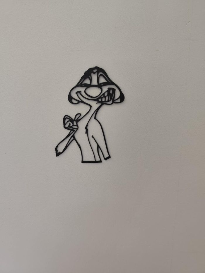 🦦 Timon – Déco murale fun & décontractée 🦦 Hakuna Matata ! Apporte la bonne humeur à ton intérieur avec cette déco murale de Timon façon contour noir. Idéal pour les fans du Roi Lion, de Disney et de déco décalée. Ce personnage espiègle saura mettre le sourire à tous ceux qui le verront. ✨ Détails du produit : 📏 Taille : Largeur 11 cm Hauteur 15 cm 🖤 Style : Silhouette noire minimaliste et expressive 🎯 Installation : Facile avec adhésif double face ou patafix 💡 Idéal pour un salon, une chambre ou un bureau #timon #disneydeco #hakunamatata #lekinglion #decomurale #vintedfind #3Dprint #geekdeco Impression 3D 133