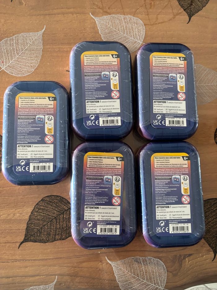 Artset mini tins kanto Français et scellé Envoie rapide et sécurisé Contenu d'une mini tins : 1 booster Origine Perdue 1 booster Astre Radieux 1 pièce métallisée Pokémon 1 carte artistique avec le visuel de la mini tins