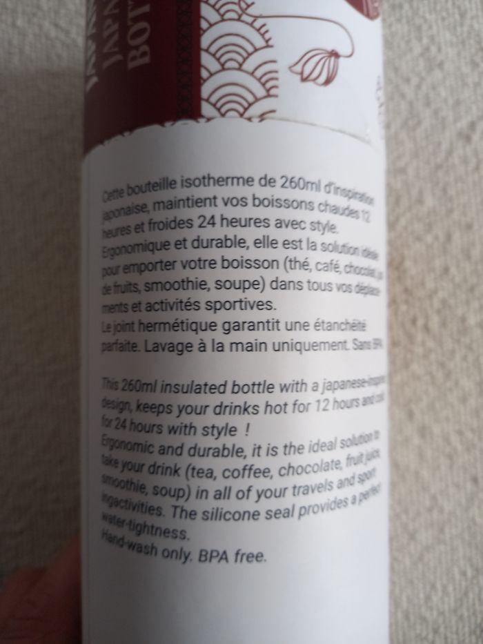 Superbe bouteille isotherme 260ml modèle Japan de Yoko Design.