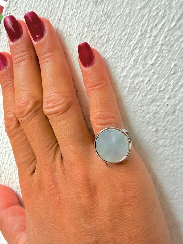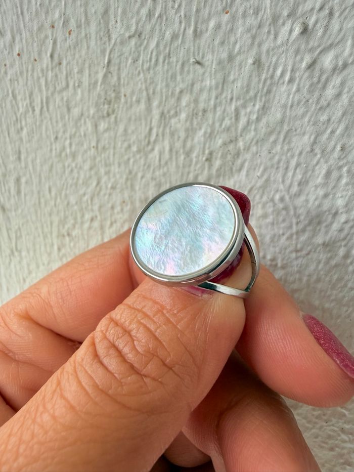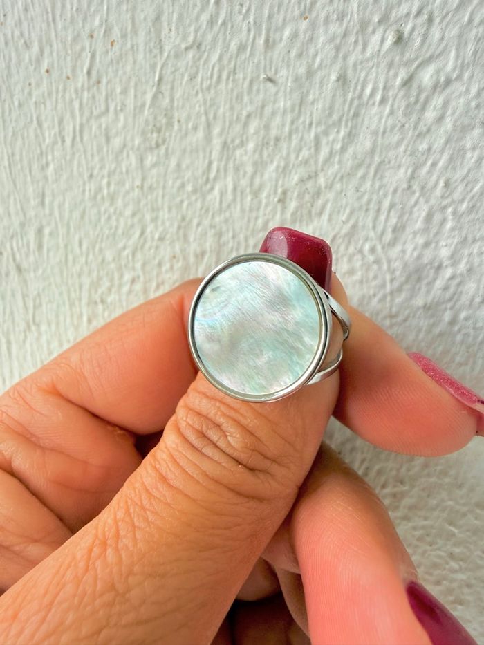 Bague en acier inoxydable avec pastille de nacre blanche véritable Taille ajustable Neuve Expédition sous 24h 💌 Envoyée dans un pochon cadeau 🎁