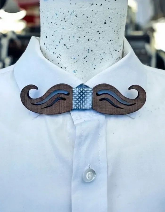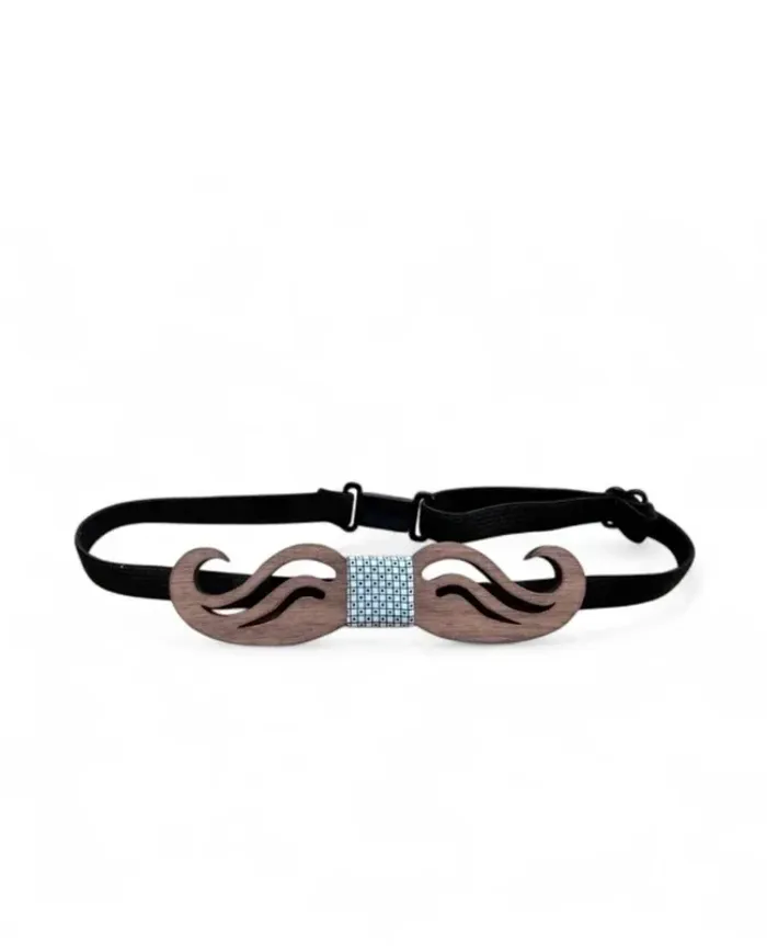 Noeud papillon artisanal moustache en bois massif de noyer - photo numéro 1