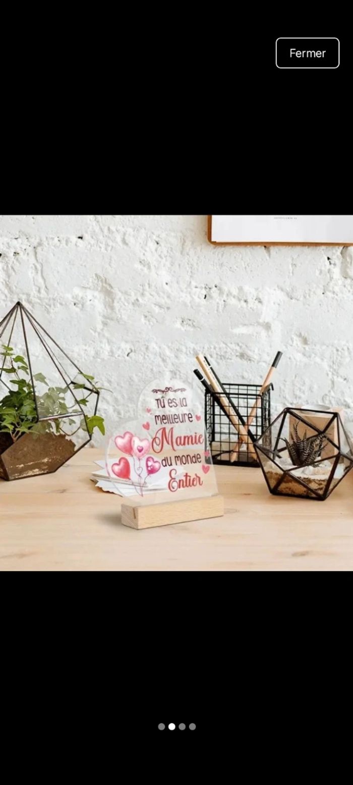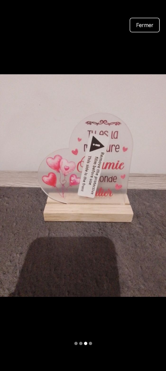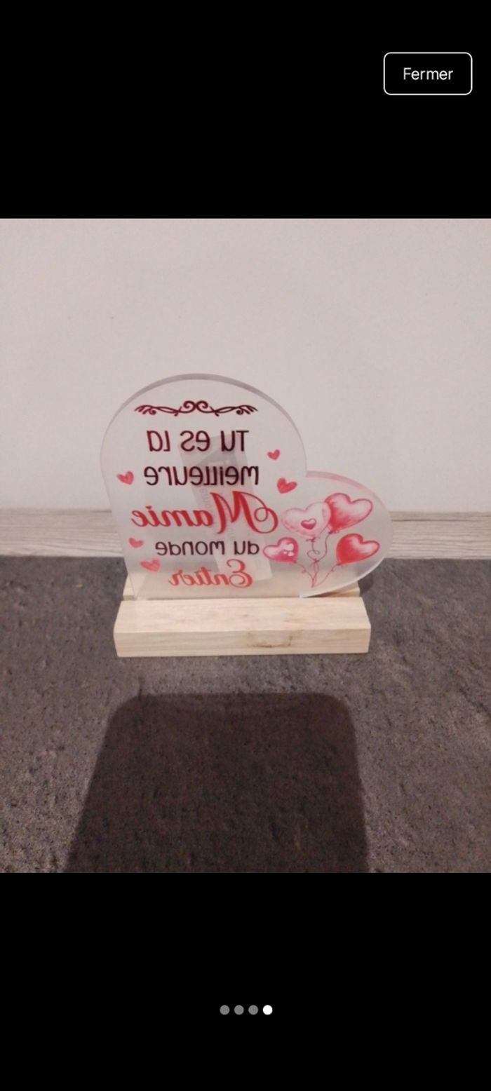 📌 Superbe panneau en acrylique en forme de coeur avec sa base en bois 📌 Le socle en bois mesure 10 cm , hauteur du cœur environ 13,2 cm 📌 Protection a retiré lors de la réception
