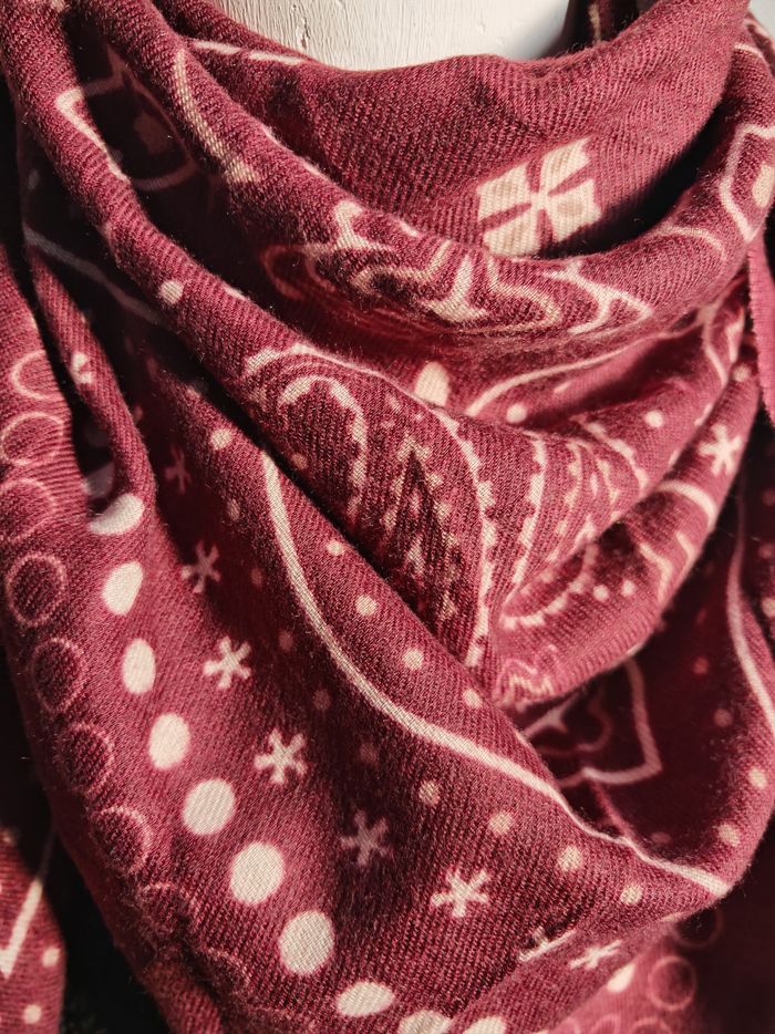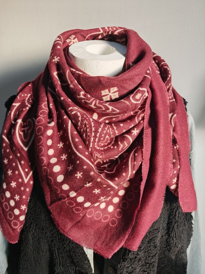 Carré bandana coloris bordeaux Laine et viscose Dimensions 110x110