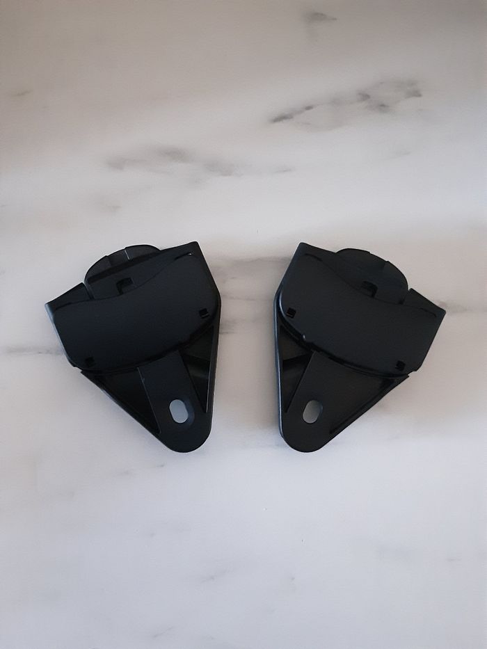 A vendre une paire d'adaptateur ( fixation, modulo clip, attaches rapide, éclipse) permettent de fixer le cosy ( siège auto) ou la nacelle ( couffin) sur la structure de la poussette. Marque bébé confort de maxi cosi Modèle Lila CP