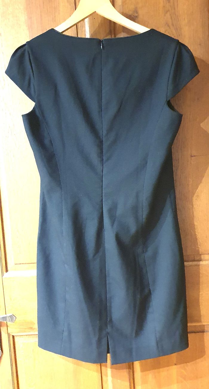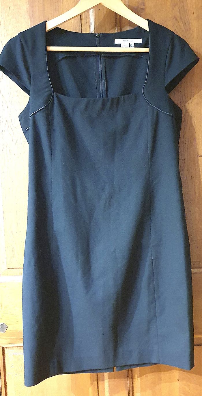 Robe droite, élégante pour cocktails, soirées Manches échancrées, encolure carrée, robe fendue au milieu derrière Longueur : genou Taille L Polyester, rayon, spandex