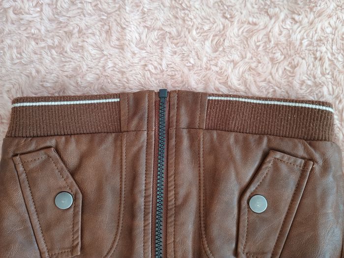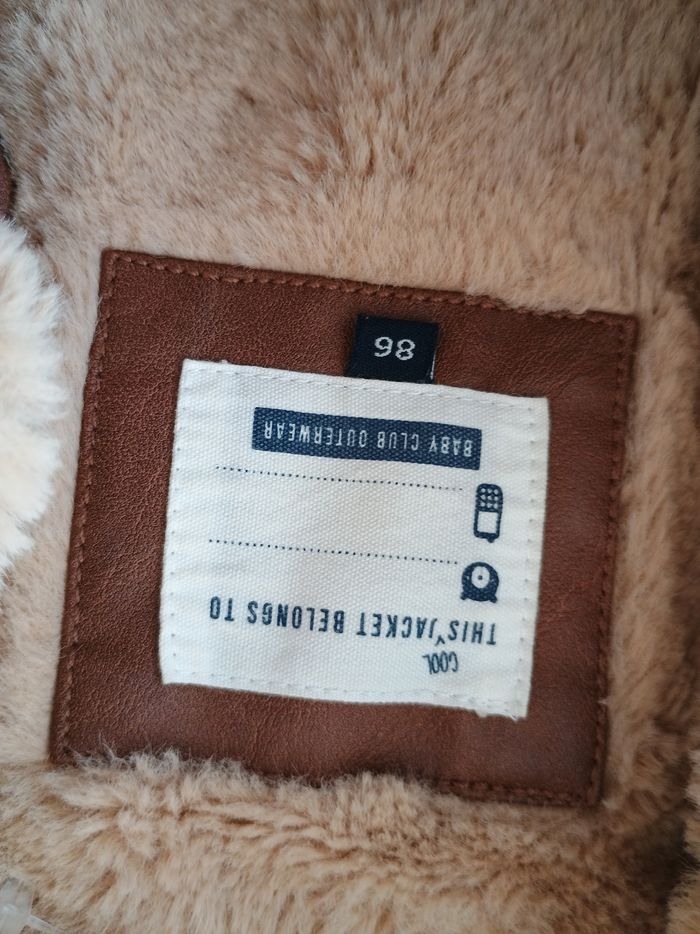 Blouson style aviateur marron avec intérieur tout doux et chaud. • Fermeture zippée • Intérieur doublé polaire • Bord-côtes poignets et taille Taille : 98 cm Marque : Baby Club (C&A) État : très bon état Porté donc pas neuf, quelques petites traces d’usure visibles sur les photos, mais reste en très bon état et bien chaud.