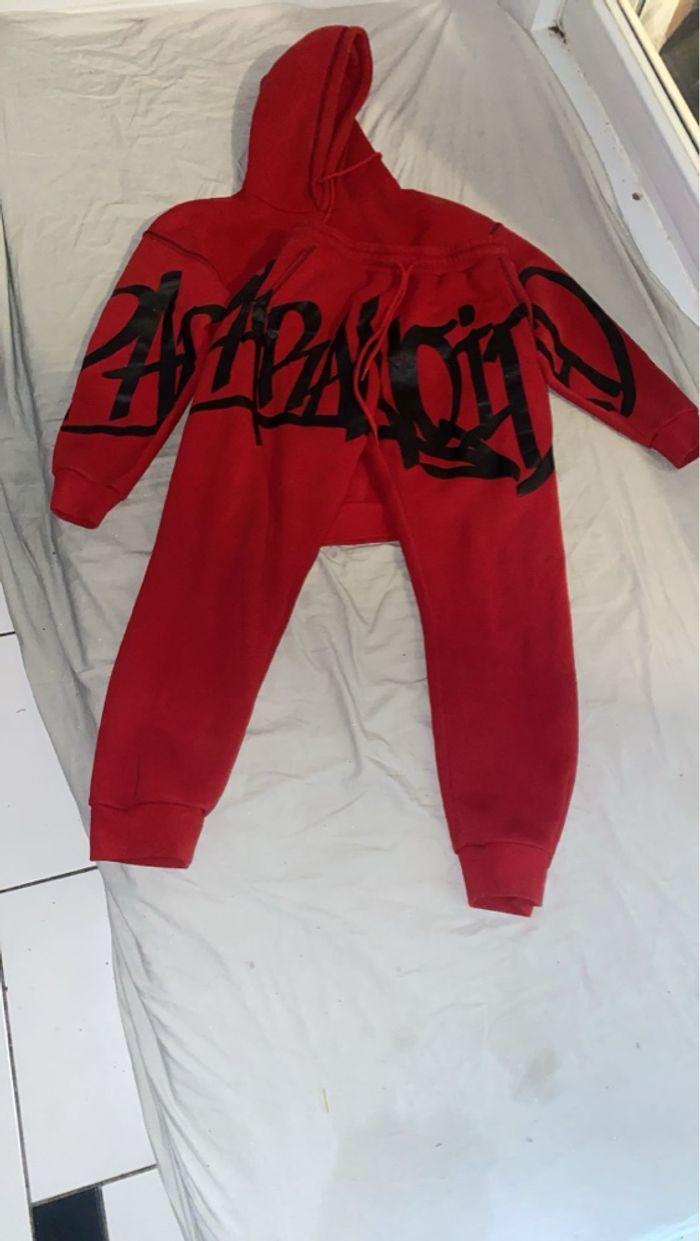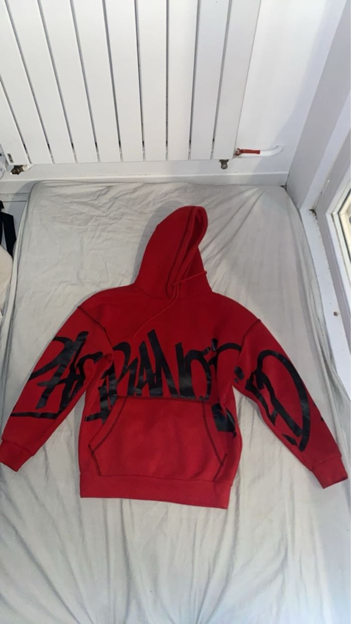 山 Partager Description Je vends mon ensemble rouge en très bon état. Sweat à capuche + pantalon assorti. Couleur rouge avec gros imprimé noir stylé. Confortable et chaud, parfait pour l'hiver ou pour sortir. Porté quelques fois seulement. Taille : S Aucun trou ni défaut.