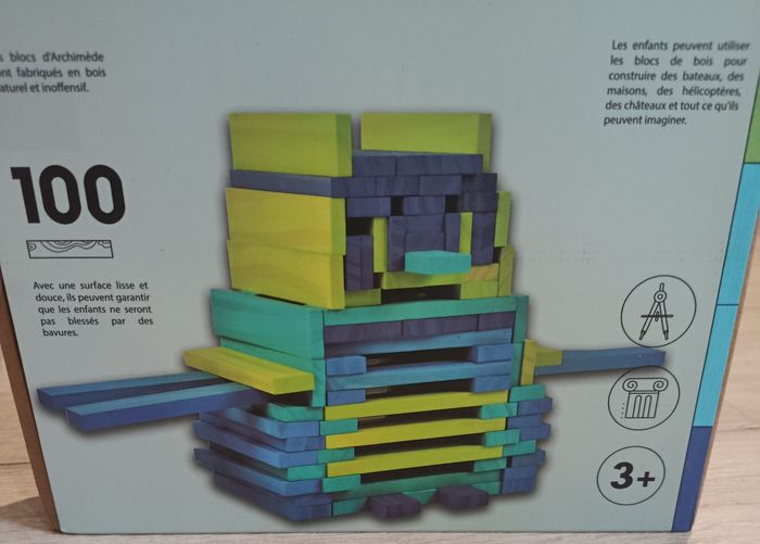 Blocs de construction 100 pièces, en bois naturel. Ces blocs de construction sont pensés pour laisser libre court à l'imagination des enfants dans la construction. Contenu de la boite: 100 pièces en bois naturel 1 manuel d'instruction Les couleurs et contenus peuvent varier de l'illustration. Prix non négociable