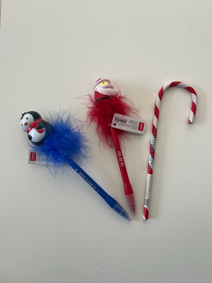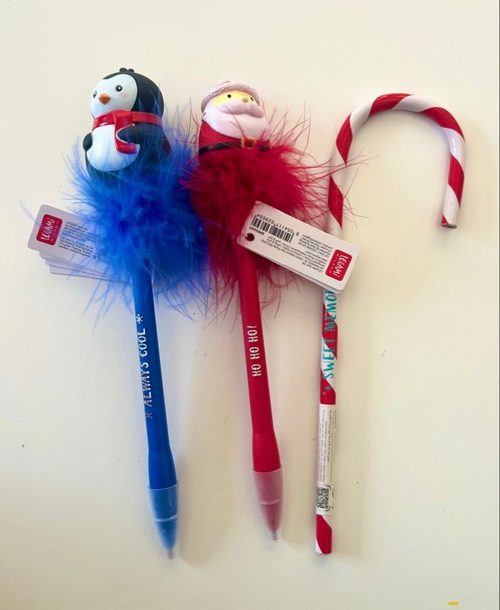 Lot Noël 2025 composé de : 1 stylo lumineux Père Noël 1 stylo lumineux Pingouin 1 crayon à papier sucre d’orge Neuf avec étiquettes Envoie rapide et soigné