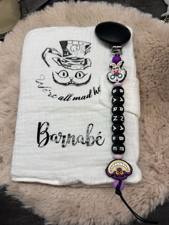Protège carnet de santé et  attache tétine Alice aux pays des merveilles