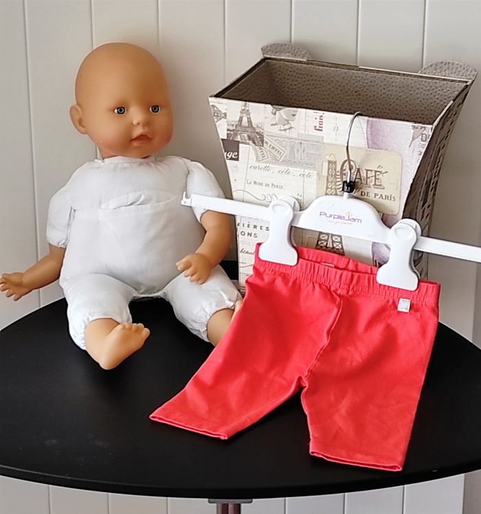 "Adorable legging court pour bébé fille, taille 12 mois. Matière : 100% coton doux et confortable Couleur : orangé vif (facile à assortir) En très bon état, peu porté, sans tache ni trou Idéal pour la belle saison, pratique à enfiler et agréable pour bébé."