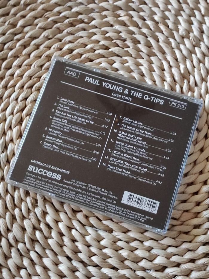 CD album de Paul Young & The Q-Tips intitulé "Love Hurts". Un incontournable pour les amateurs de soul et de musique rétro des années 80. Très bon état. Avec son petit livret.
