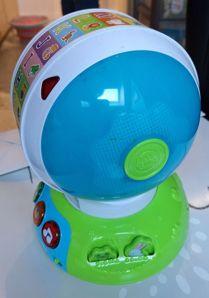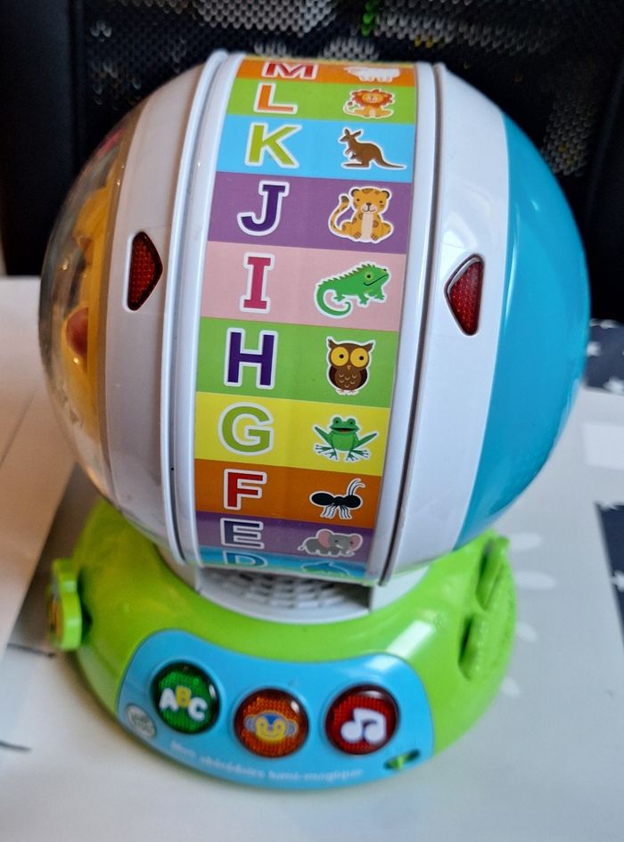 Mon abécédaire lumi-magique, roue que l'on peut faire tourner, sonore et lumineuse Marque Leap Frog Très bon état, peu servi, fonctionne avec 3 piles AA (non fournies)
