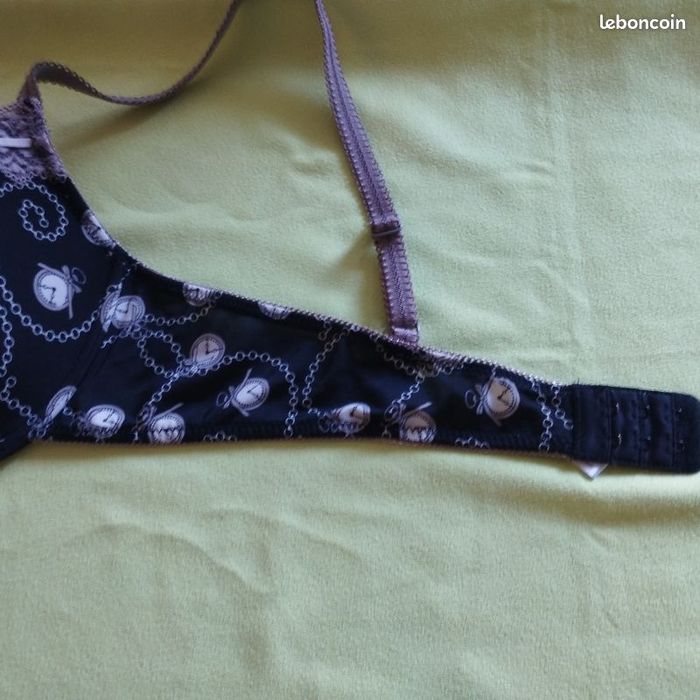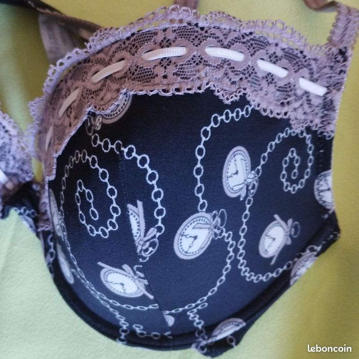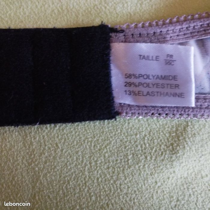 Soutien gorge 95C. 58%Polyamide 29%Polyester 13%Elasthanne. Noir, dentelles couleur champignon comme les bretelles, avec ruban beige. Comme neuf !