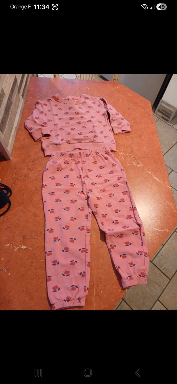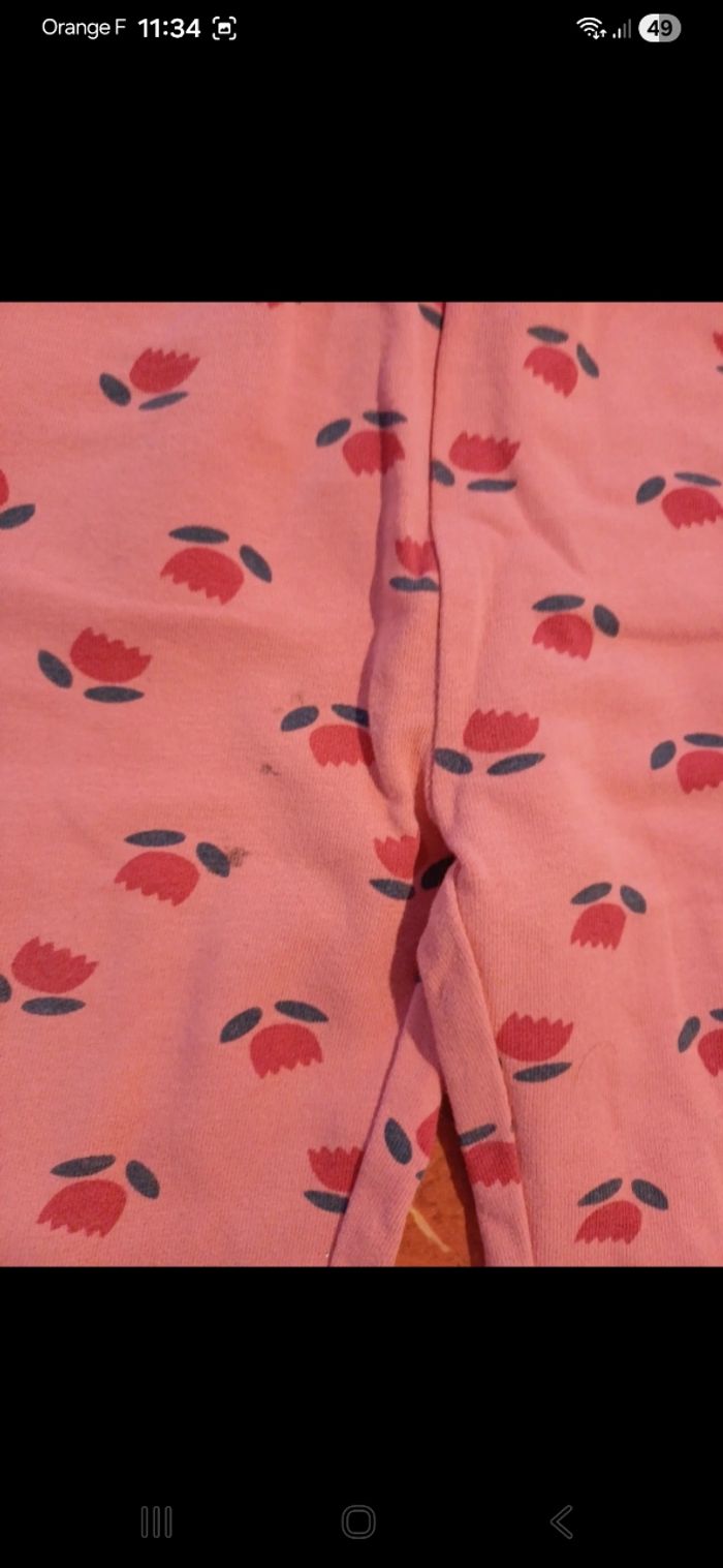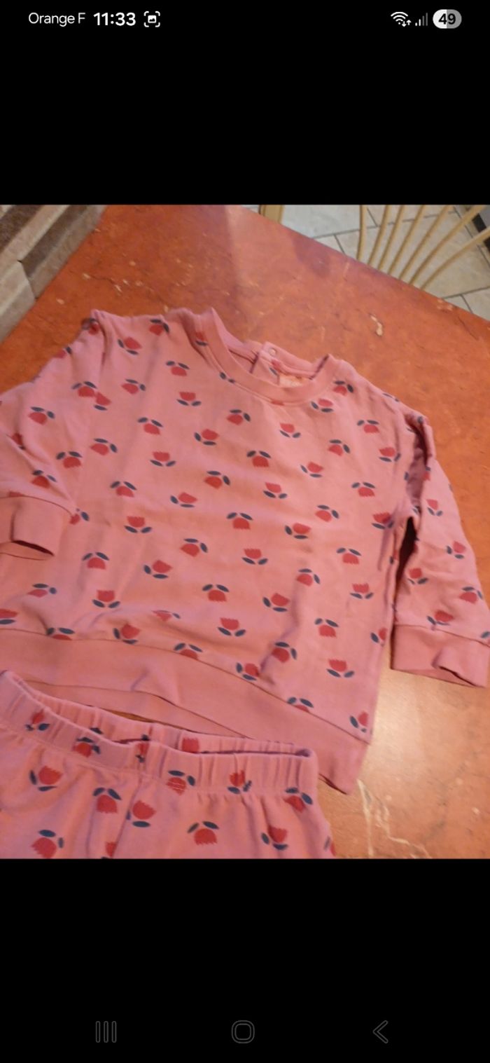 Ensemble comprenant un sweat col rond avec pressions à l arrière et un bas confortable elastiqué à la taille assorti. Malheureusement tache à l avant ( voir photo)