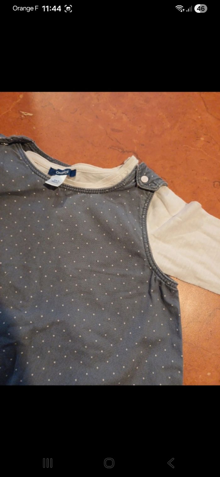 Ensemble comprenant un t.shirt manches longues uni et une robe sans manches à pois. Neuf