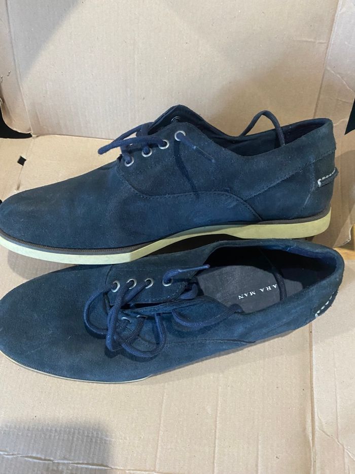 Je vends cette paire de chaussures derby de la marque Zara, en très bon état. - Type de produit : Chaussures à lacets - Univers : Homme - Marque : Zara - Pointure : 41 - Couleur : Marine - Matière : Daim N'hésitez pas à me contacter pour plus d'informations pratiquement pas portée remise en mains propres possibles sur Montpellier