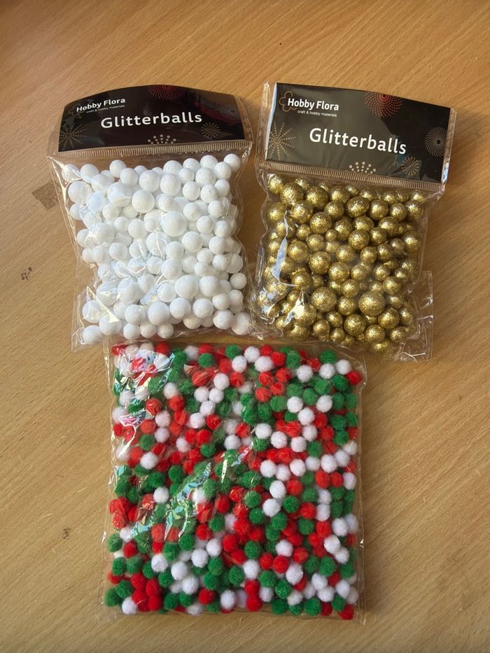 2 paquets de boule pailletée en polystyrène en blanc et doré + 1 paquets de boule en feutrine Paquets neuf