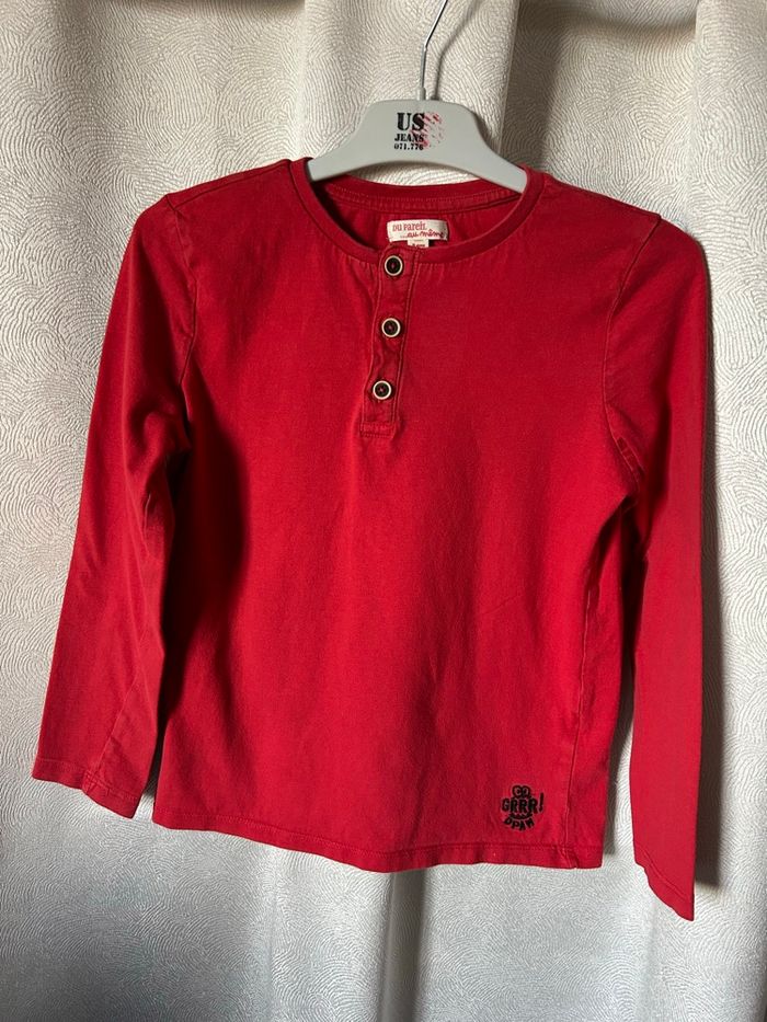 T-shirt coton rouge Manches longues Patte boutons à l’encolure Taille 8 ans 128 cm Du pareil au même