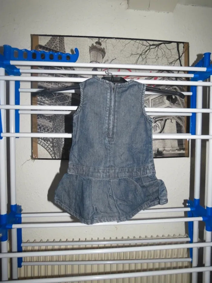 Je vends cette jolie robe en jean pour bébé fille de 9 mois. - Type de produit : Robe - Univers : Fille - Taille : 9 mois / 74 cm - Marque : Autre - Couleur : Bleu ciel - Matière : Jean N'hésitez pas à me contacter pour plus d'informations.