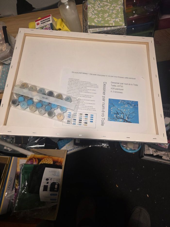 Lot complet loisirs créatifs – 40 € (prix ferme) Grand lot comprenant 31 articles neufs, jamais utilisés : – 20 diamond painting • 15 formats 40×50 cm (motifs bouquets de fleurs) • 3 formats 20×20 cm (motif grenades) • 2 formats 20×20 cm phosphorescents – Glow in the Dark – 1 toile à peindre par numéros 40×50 cm (kit complet) – 2 toiles décoratives montées sur châssis 40×60 cm – 4 grandes palettes de peinture en bois 35×27 cm – 1 palette de peintre ovale en bois – 1 livre créatif floral + 2 jeux créatifs papier (Djeco) Valeur moyenne : environ 1,30 € par article. Vendu en l’état. Vente en lot uniquement – aucun détail. Aucune négociation, aucune offre. Remise en main propre ou envoi possible (frais à la charge de l’acheteur). Cause déménagement.