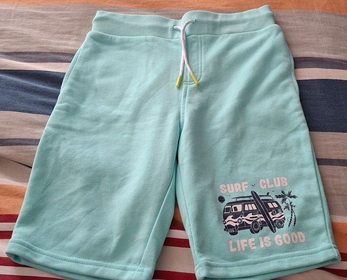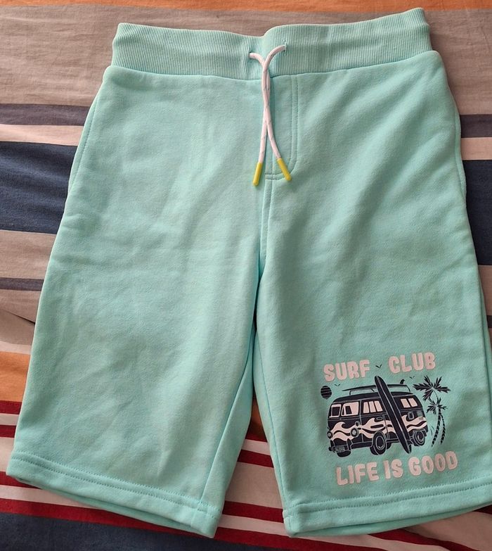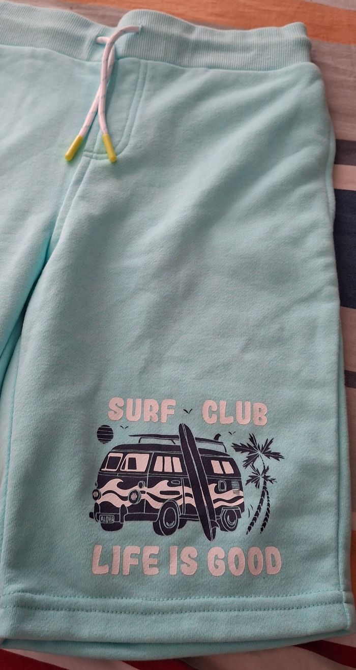 Bermuda bleu avec poche latérale motif avec dessin réglable à la taille par un cordon marque in extenso taille 10 ans/ 131 -143 cm Neuve avec étiquette