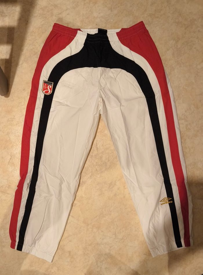 Superbe track pant issu de la collaboration Supreme x Umbro. Design tricolore avec logos brodés. #supreme #umbro #streetwear #trackpant #football #vintage