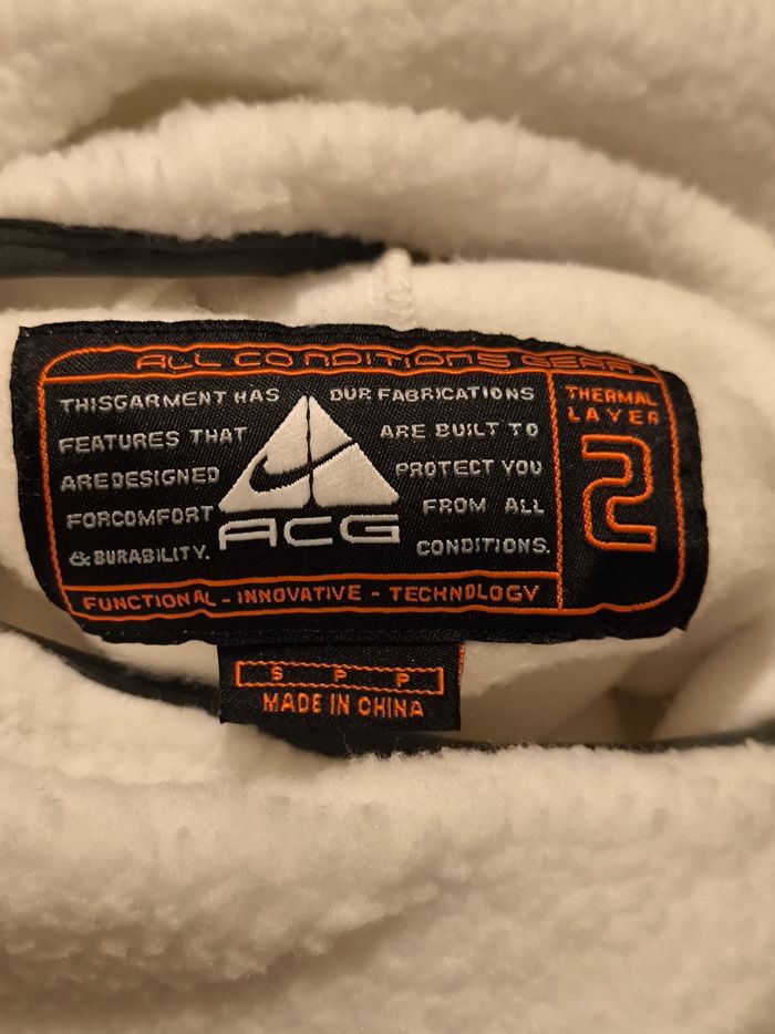 Hoodie en polaire Nike ACG. Capuche avec masque balaclava intégré (style ninja). Empiècements noirs renforcés aux coudes et épaules. #nike #nikeacg #acg #gorpcore #fleece #techwear #ninja