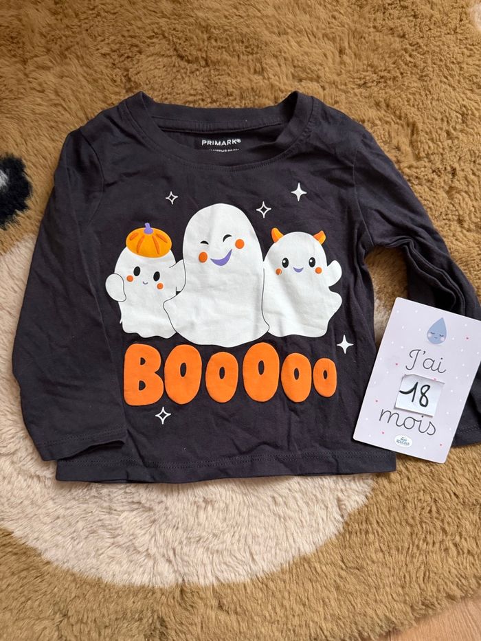 Tee shirt manches longues gris foncé PRIMARK taille 12-18 mois (86cm) Motif fantôme/citrouille avec inscription « boo » orange TRÈS BON ÉTAT #bebegarcon #bebe18mois #halloween #automne #hiver Retrouvez tous mes articles bébé garçon : #ixfeelxinsanebebegarcon