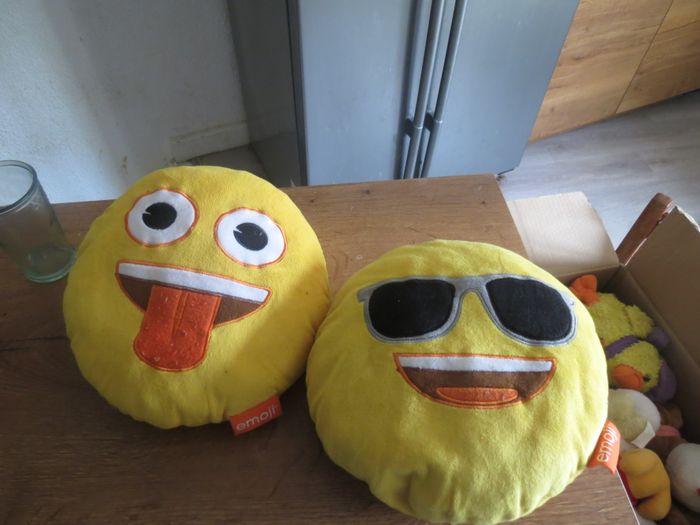 Je vends ce lot de 2 doudous emoji jaunes, parfaits pour les tout-petits ! Des compagnons doux et amusants pour des moments de câlins et de jeux. - Type de produit : Doudous & peluches - Composition du lot : 2 doudous emoji jaunes (1 avec la langue tirée, 1 avec des lunettes de soleil) - Matière : Peluche - Âge recommandé : De 0 à 3 ans - Marque : Emoji Très bon état. N'hésitez pas à me contacter pour plus d'infos ou de photos !