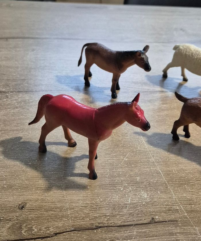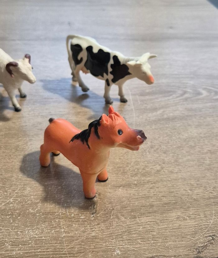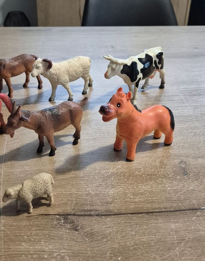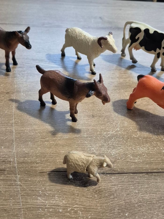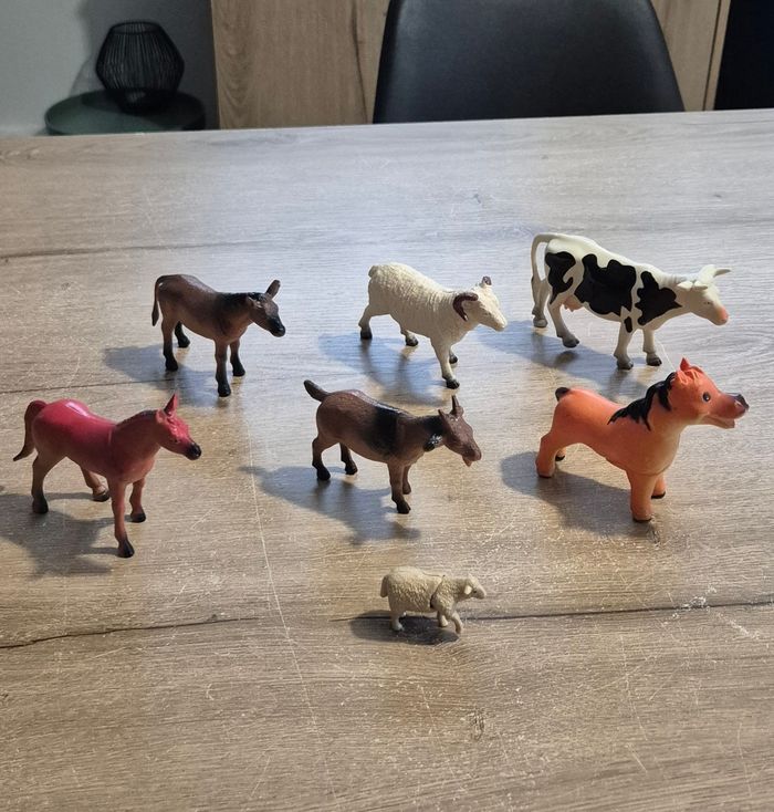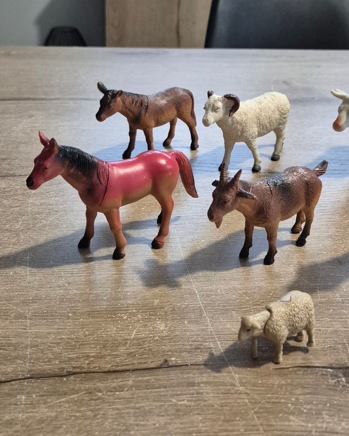 Lot de 7 figurines animaux : âne, bouc, vache, cheval, chèvre, mouton Bon état