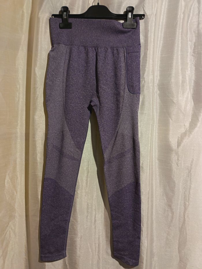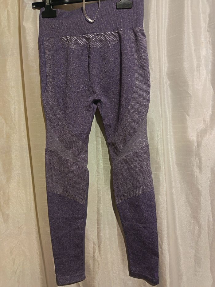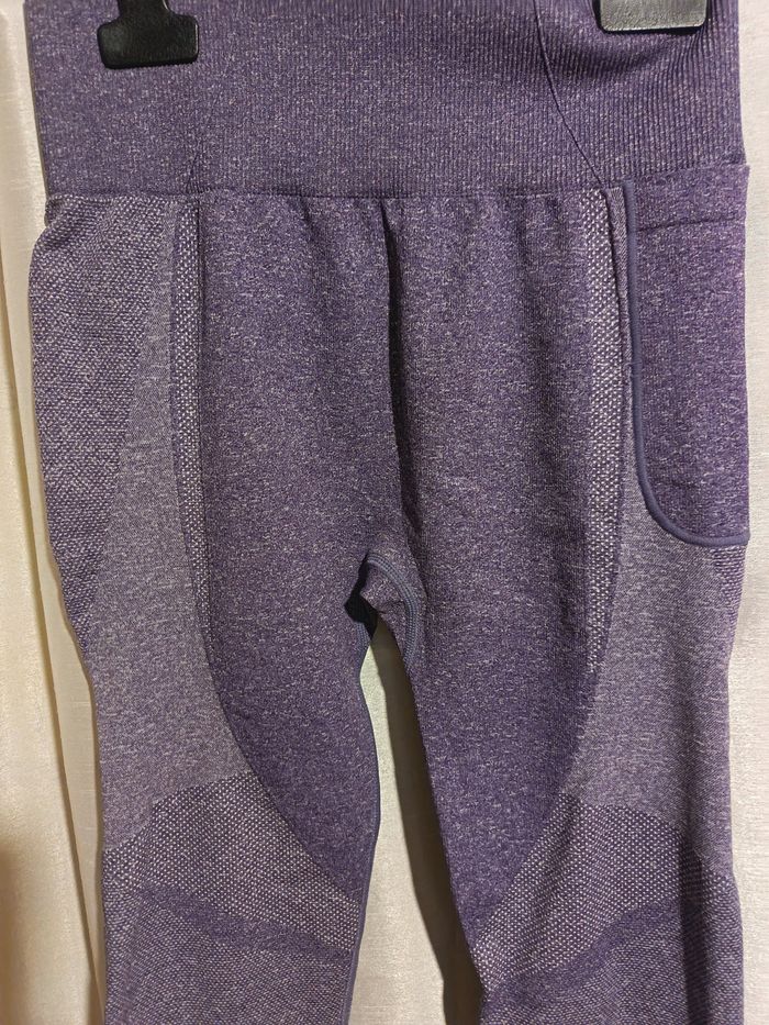 leggins mauve pour le sport aucune étiquette de marque n'y de taille coupé pour plus de confort extensible une poche téléphone sur le coté largeur taille 29 à31 longueur jambes64 longueur total 87