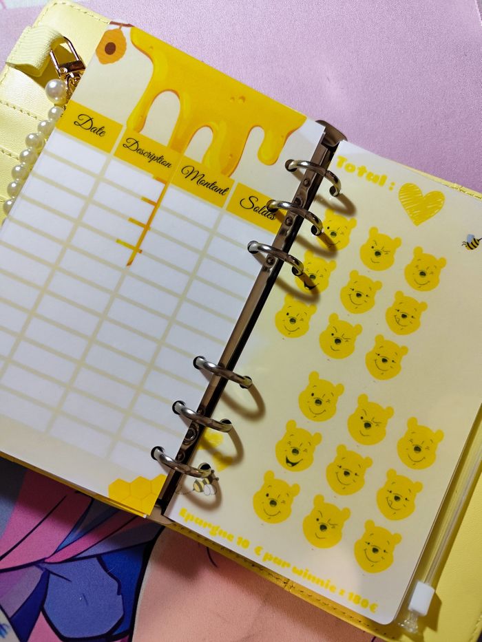 carnet budget épargne Winnie l'ourson  comprend un carnet, la page de garde, les défis avec trackers et le bijoux sur la photo (stylo offert) permets d'épargner la somme au fur et à mesure de l'année. envoi rapide ⭐