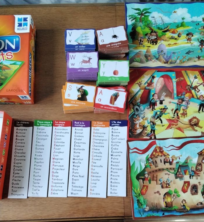 Vocabulon des petits , 6 jeux en 1 pour découvrir les mots De 1 à 6 joueurs De 3 à 6 ans Ce jeu invite les enfants à découvrir l alphabet, le vocabulaire de façon ludique. L enfant découvre et mémorise, par étape les lettres de l alphabet et 120 mots associés à six paysages familiers De 3 à 5 ans pour observer et associés De 5 à 6 ans pour lire et réfléchir Il y a 6 planches de paysages, de 6 couleurs différentes 6 planches de mots, de 6 couleurs comme les paysages 120 cartes de mots , de 6 couleurs différentes, comme paysages et planches De marque Larousse Megableu #moreau36_jouet