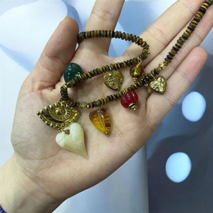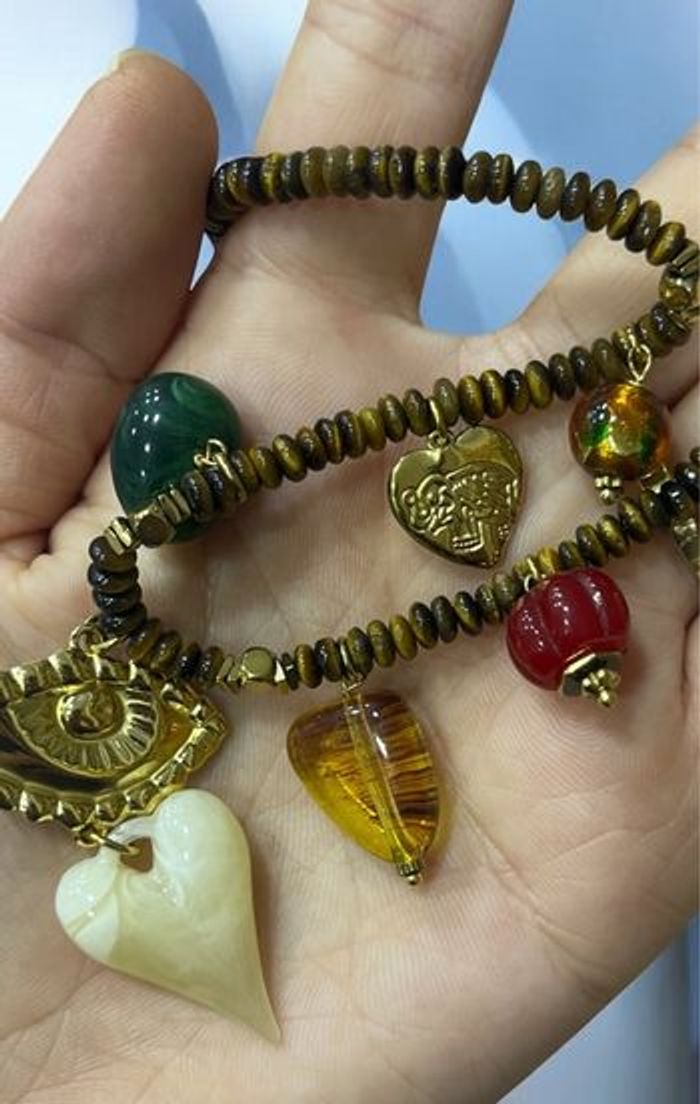 Collier pierre naturelle, œil de tigre et vert, graver, acier inoxydable