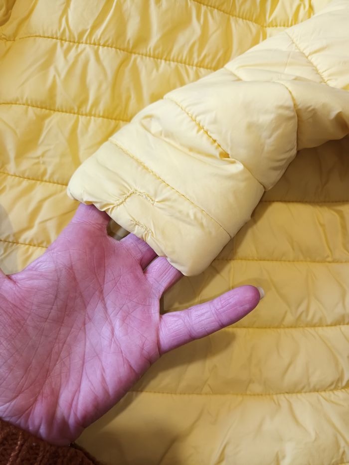 Doudoune 1 tâche au bas du dos, le bout des manches est pas top, 1 partie racommodée Taille 116 Couleur : jaune Marque: Lupilu #monsixansfilleemilie Les remise sont activées sur les lots La liste des filtres # est sur mon profil