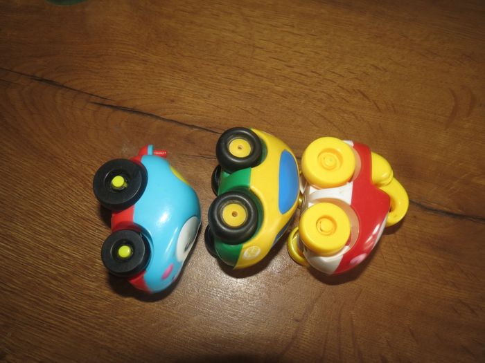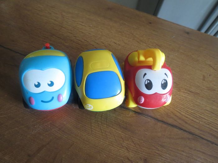 Je vends ce lot de 3 petites voitures colorées avec des visages souriants, parfait pour les tout-petits qui découvrent le jeu et l'imagination. - Type de produit : Véhicules miniatures - Composition du lot : 3 petites voitures (1 bleue, 1 jaune, 1 rouge) - Matière : Plastique - Âge recommandé : De 0 à 3 ans - Fonctionnalités : Visages expressifs et colorés Très bon état. N'hésitez pas à me contacter pour plus d'infos ou de photos !