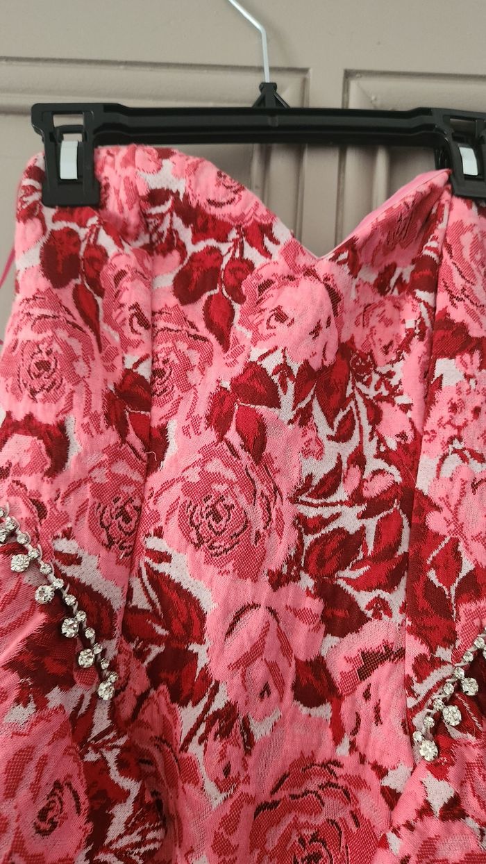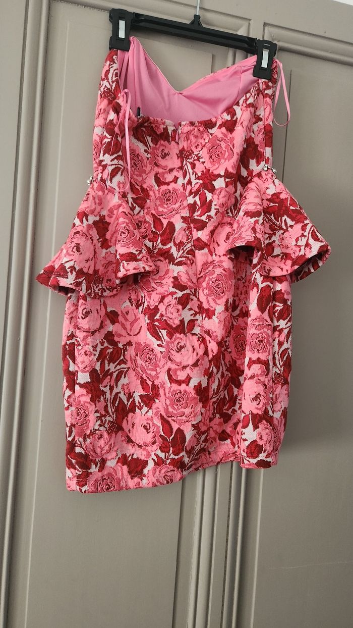 Tres belle robe femme Robe bustier Marque Zara Taille M Petit défaut ( la ou il y a les perles sur le côté un côté est casser dans la livraison quand je lai réceptionner) rien de grave. Effet tapis Couleur rouge et rose Fermeture a l'arriere Froufrou sur les côtés Envoi en mondial relay