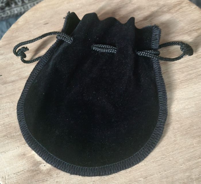 Pochette à bijou noir effet daim au touché marque Khantor, se ferme à cordon, idéal pour vos bijoux.