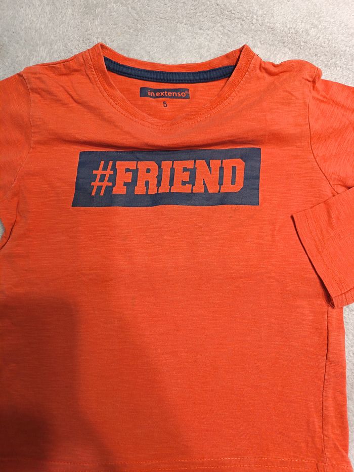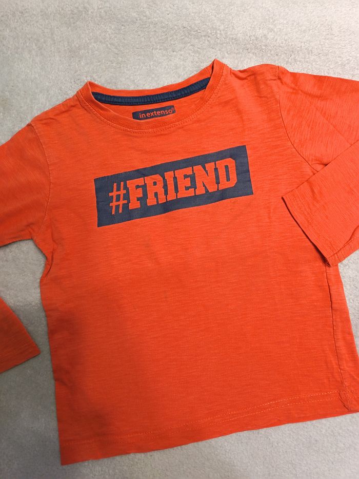 tee shirt orange imprimé avec manches longues encolure ronde dos uni largeur épaule 30 largeur poitrine 34 longueur manches 37 longueur total 40 10 articles à 1.50 =10€