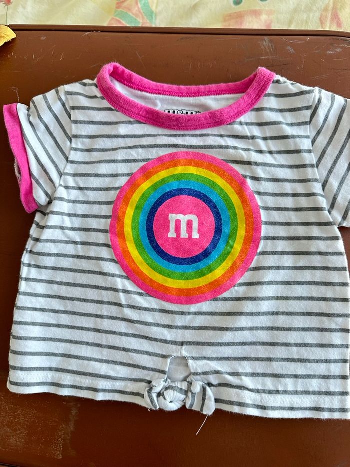 6 tee-shirts pour filles dont 2 à manches longues en coton Les 6 pour 5€ Marque : kiabi, cadet Rousselle, baby, m&m’s