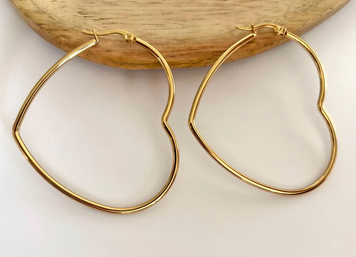 Créoles coeur 57 mm doré à l'or fin 14 carats