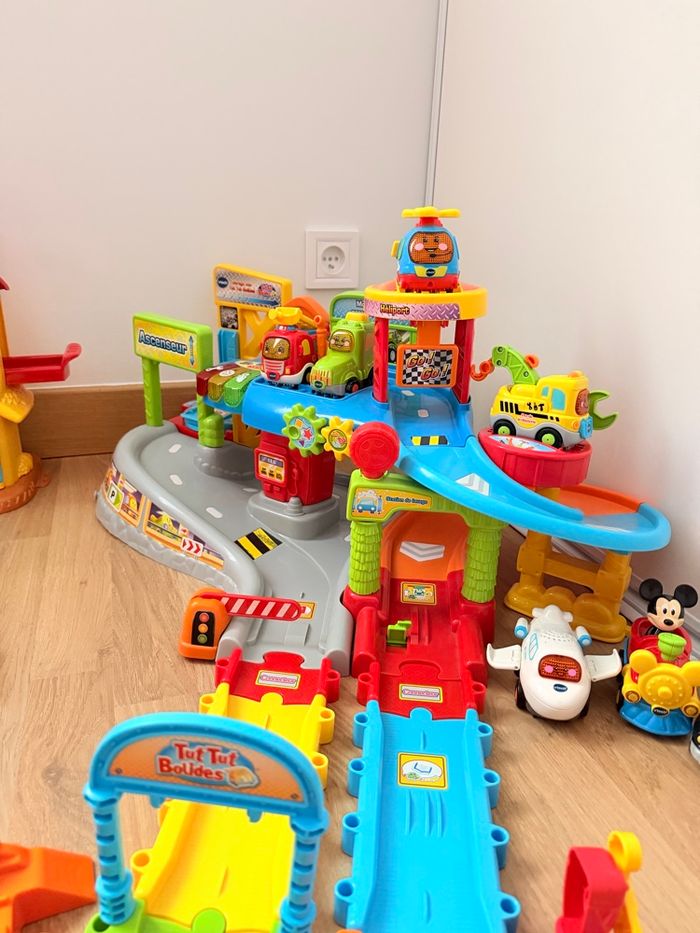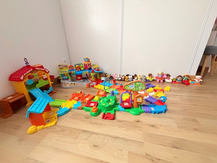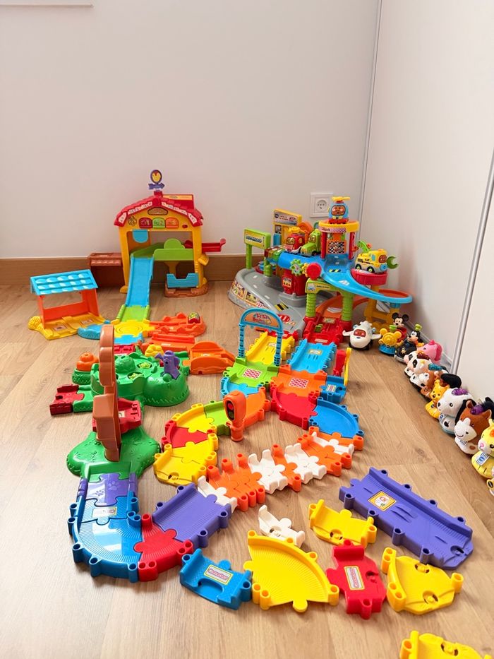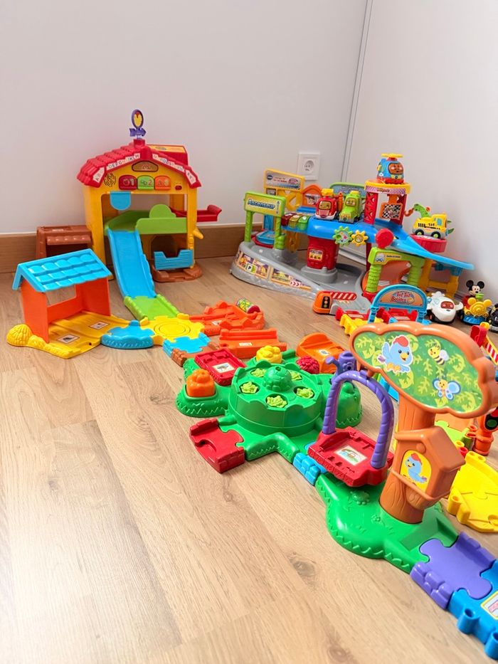 🚗🎶 Alerte super méga lot pour mini explorateurs ! 🐶👩‍🌾 Un tutu VTech qui chante et fait bouger 🎵💃, une voiture avec garage pour des courses de folie 🚗💨, des personnages animaux trop mignons 🐰🐻, et une ferme avec personnages Disney pour inventer mille histoires magiques 🌈✨