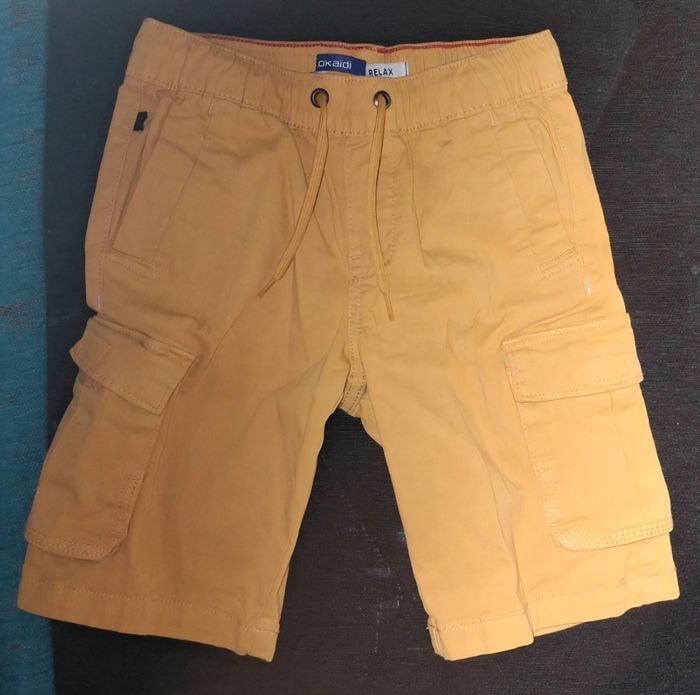 Bermuda OKAIDI relax Taille 5 ans / 110 cm Mode aventure activé avec ce bermuda cargo ! Pour parcourir le monde, jouer avec ses copains ou profiter des beaux jours, les garçons valident la taille élastiquée ajustable et les multipoches ! Toile de coton. Effet froissé par endroit. Cordon à nouer. Coutures ton sur ton.