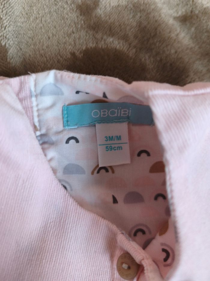 Robe manches longues taille 3 mois de couleur rose de marque obaibi