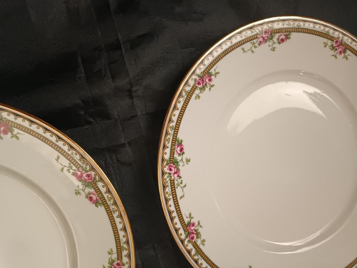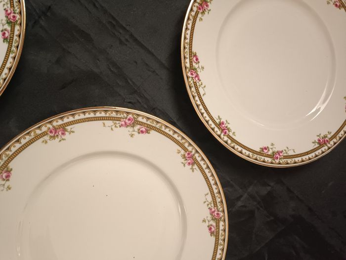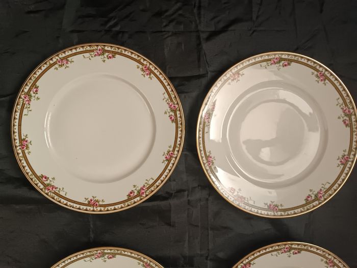 6 assiettes 24 cm en porcelaine Jean Boyer Limoges France à décor floral et liseret doré marque d'usage bon état cf photos