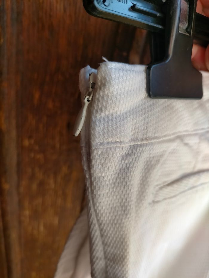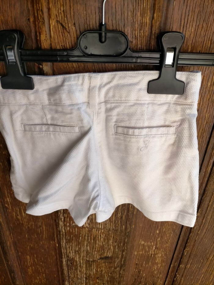 Excellent état. Très joli short en coton gaufré blanc. Pan de jupe de, taille ajustable, deux poches fentes dont une brodée du J au dos