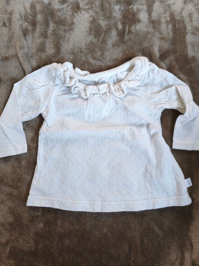 Petit haut manches longues de couleur blanc taille 3 mois de marque obaibi